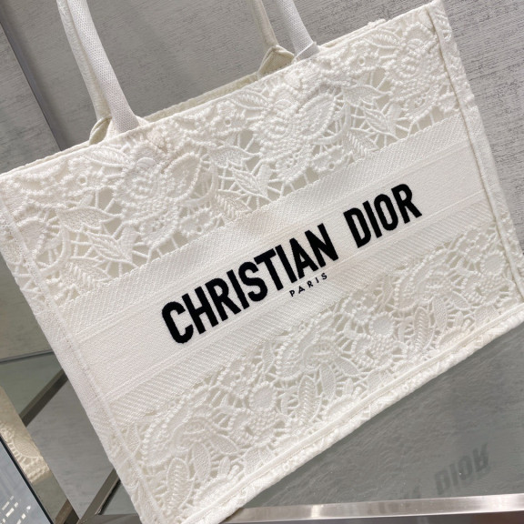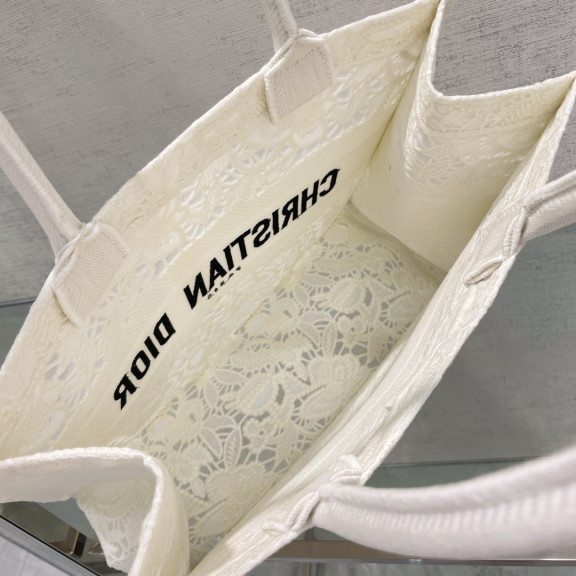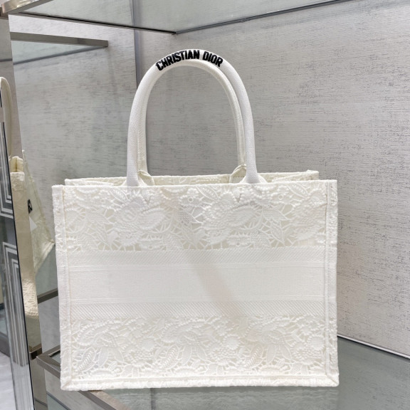 디올 북토트 자수 레이스 미듐 (화이트)