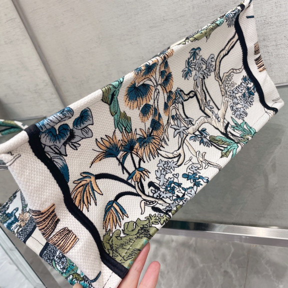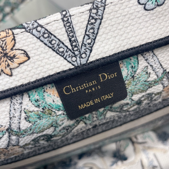 디올 북토트 자수 레이스 미듐 (화이트)