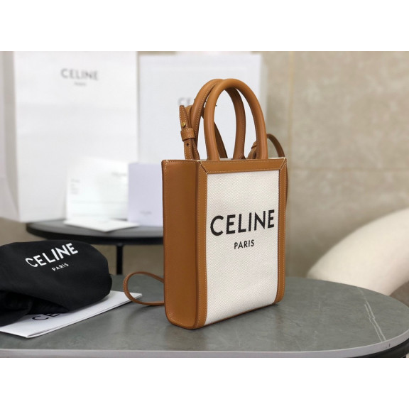 [CELINE-셀린느] 미니 버티컬 카바스 - CELINE 프린트 트리옹프 캔버스 & 카프스킨 [백경]