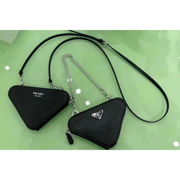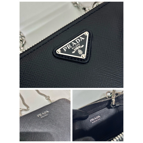 프라다 페드로 브러시드 레더 미니 파우치