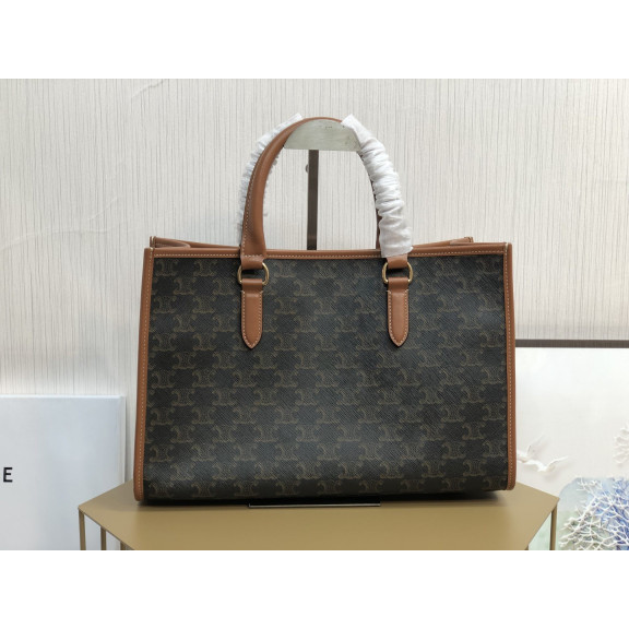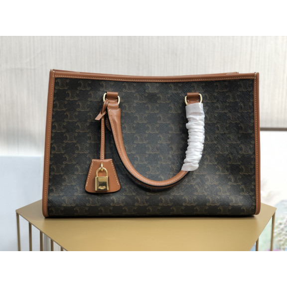[CELINE-셀린느] 스몰 버티컬 카바스 - CELINE 프린트 트리옹프 캔버스 & 카프스킨 탠 [백경]