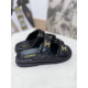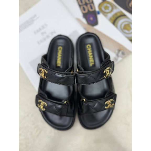 샤넬 시즌 CC 로고 가죽 레더 벨크로 뮬 슬리퍼 블랙