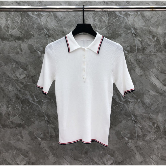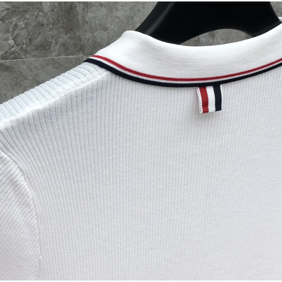 [TOM BROWNE -톰브라운 ] 톰브라운 카라 반팔 니트 화이트