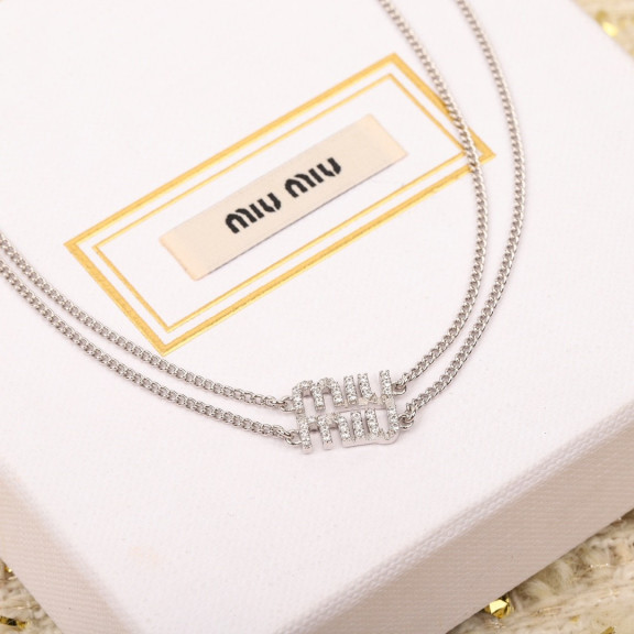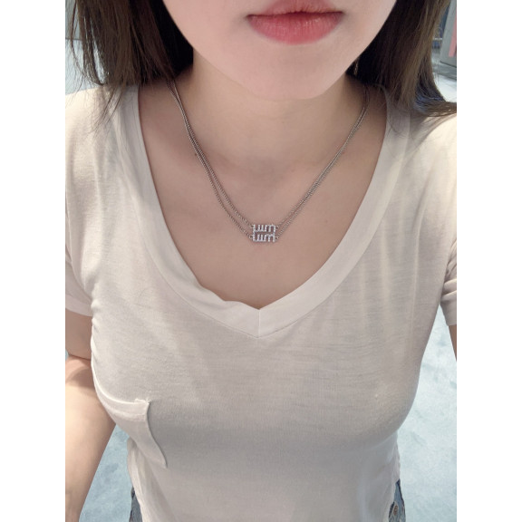 [MIU MIU-미우미우] 미우미우 로고 크리스탈 네크리스 목걸이
