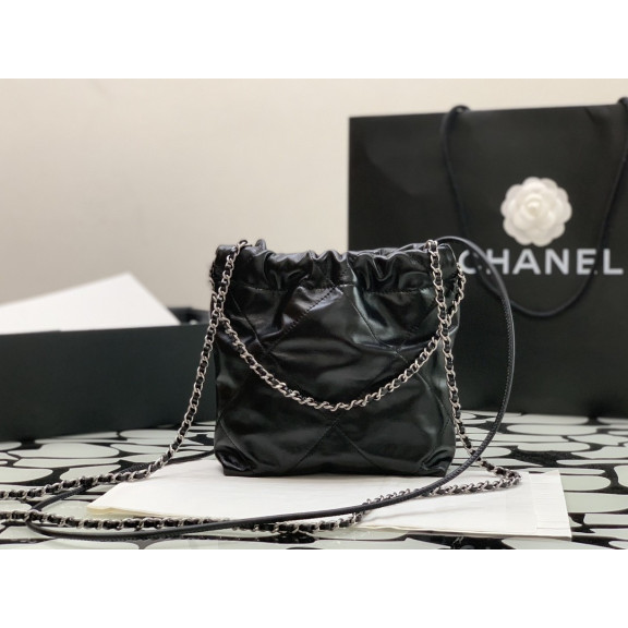 샤넬 22백 미니 블랙 카프스킨 실버