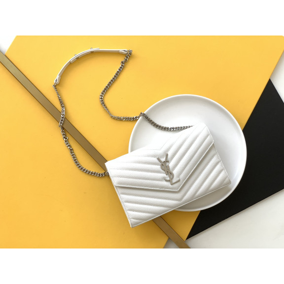 세인트로랑 모노그램 체인 숄더백 화이트 은장 (22.5cm)