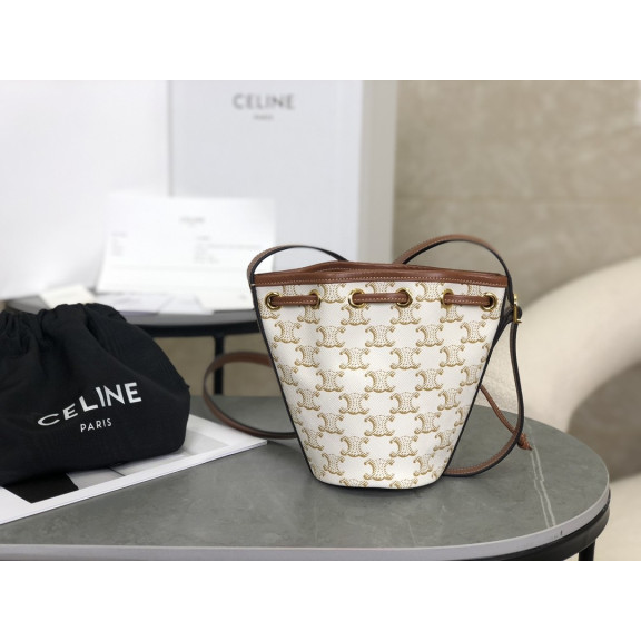 [CELINE-셀린느] 트리옹프 캔버스 & 카프스킨 복조리백 화이트 [백경]
