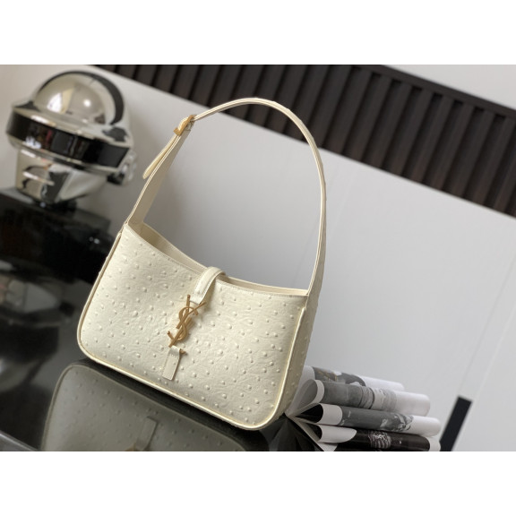 세인트로랑 스무스 악어가죽 LE 5A7 스몰 호보백 (크림)