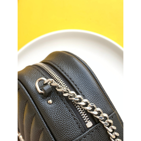 세인트로랑 YSL 로고 모노그램 체인 숄더백 블랙/화이트 (은장)