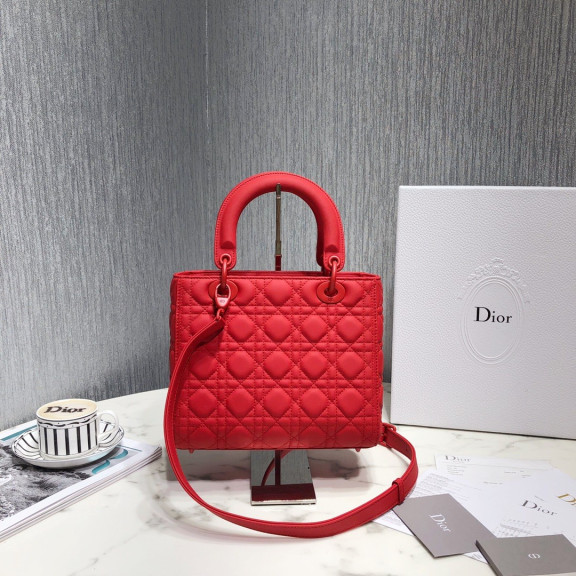 디올 레이디백 램스킨 매트 원톤 (레드)