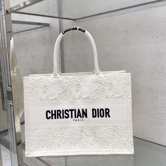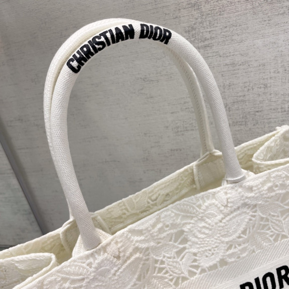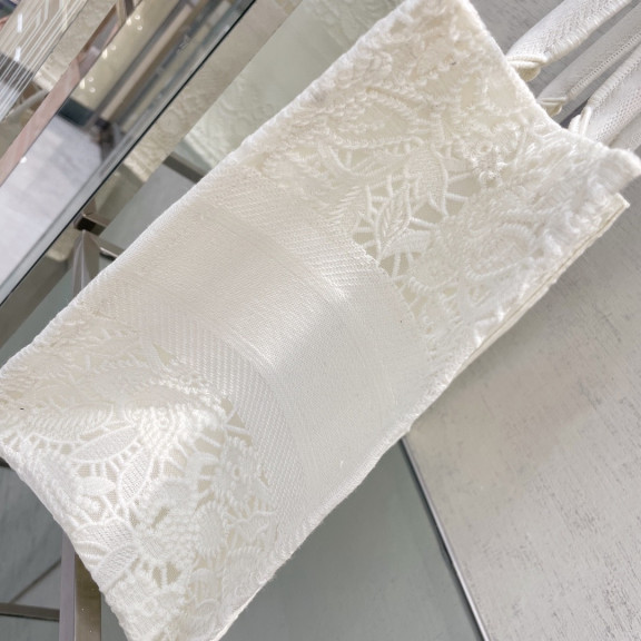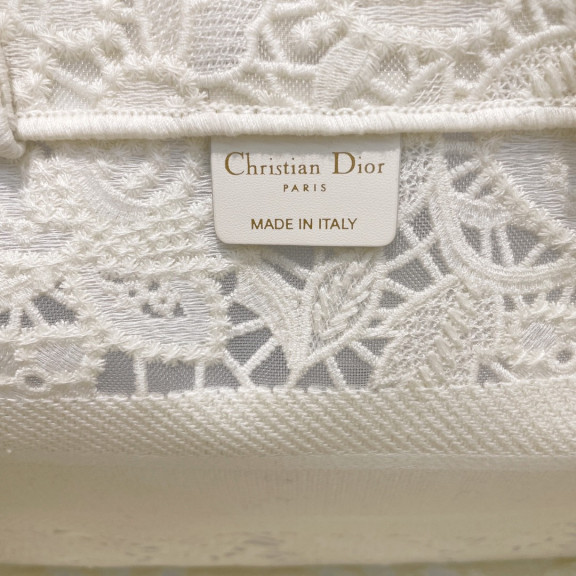 디올 북토트 자수 레이스 미듐 (화이트)