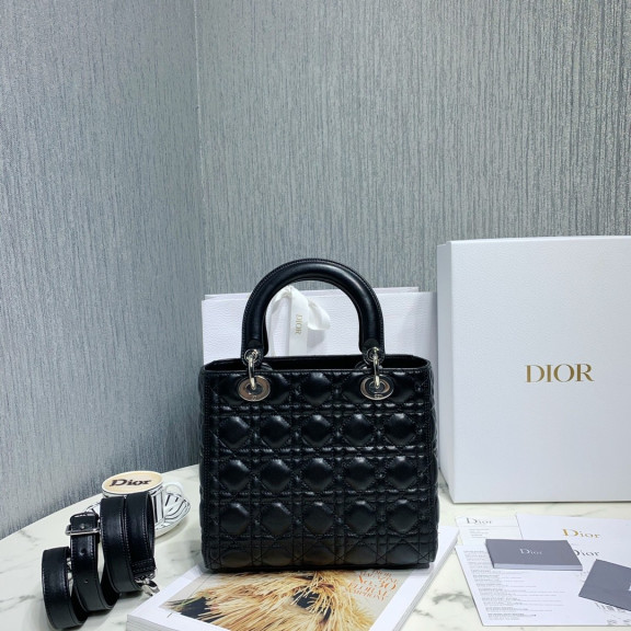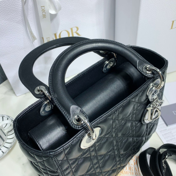 디올 레이디백 램스킨 은장 (블랙)